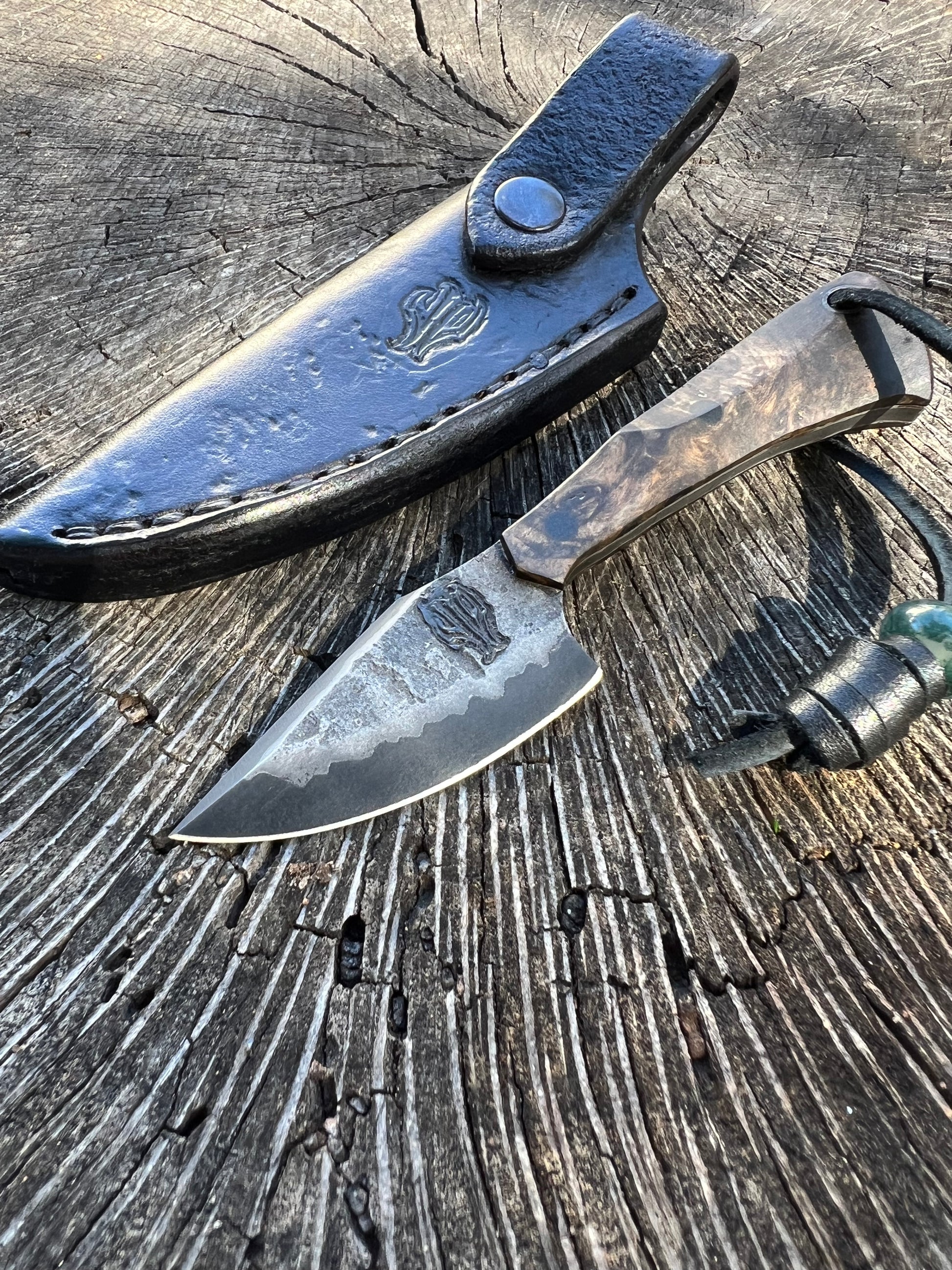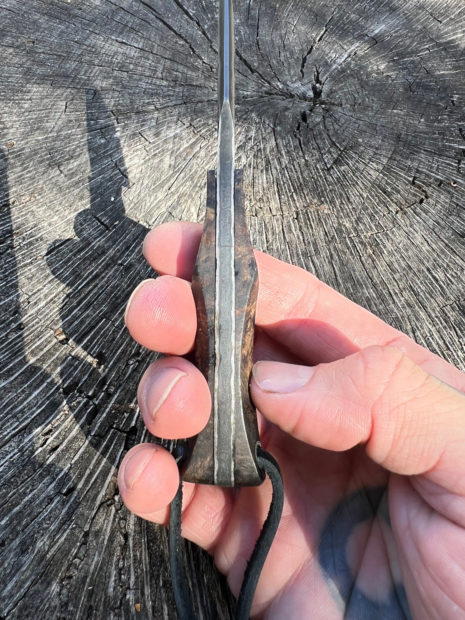San mai blade means three layers and this is what this blade is. Three layers of steel forged together, ground down, then etched to bring out the color of the layers. A great small everyday blade nice that’s comfortable in the hand and light on the belt.